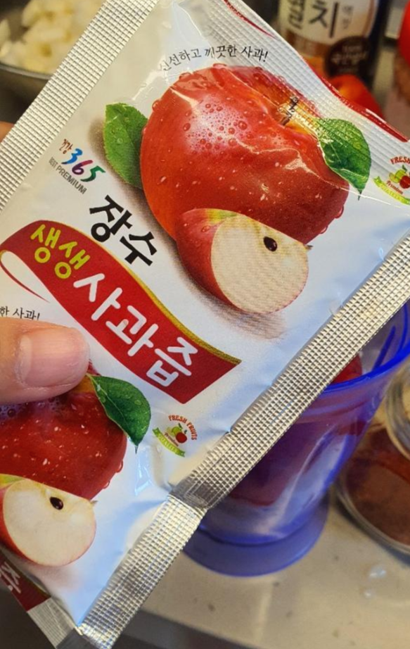 흰밥은 찹쌀풀 대신 넣는 건데요. 찹쌀풀을 따로 쑤기 귀찮으신 분들은 이렇게 하시면 됩니다!^^ 그리고 사과즙과 양파를 넣었기 때문에 설탕은 전혀 넣지 않았어요!
